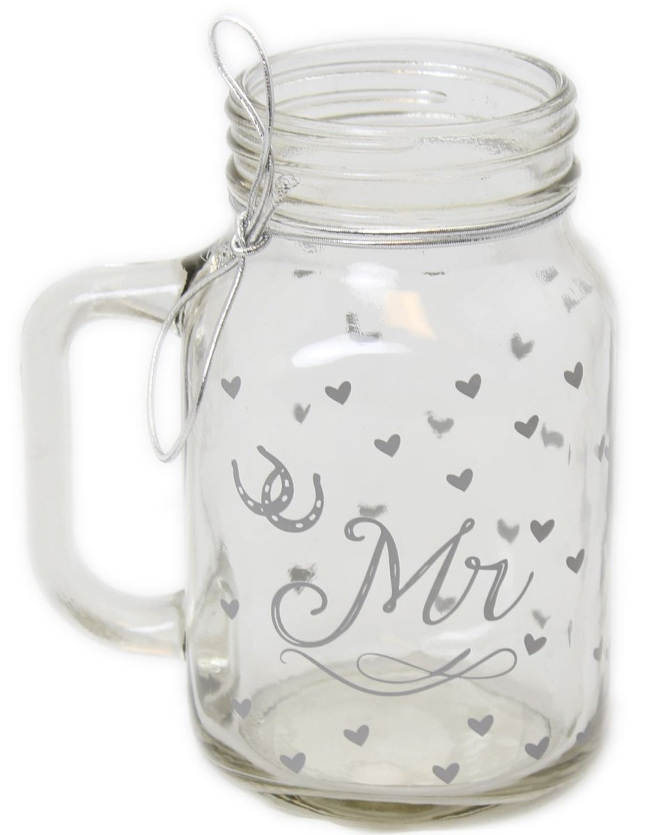 Clear glass mason style drinking jar for the new MR in 'Mr and Mrs'!