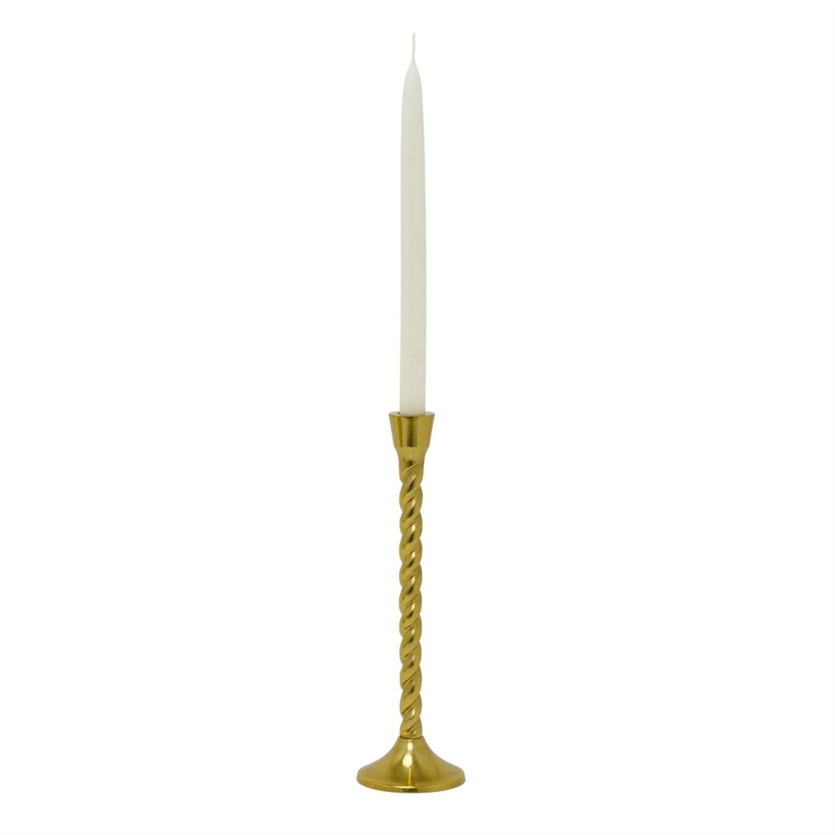 BARLEY TWIST CANDLESTICK | A gold metal candlestick with a classic spiral stem, designed to add character and visual interest to your table