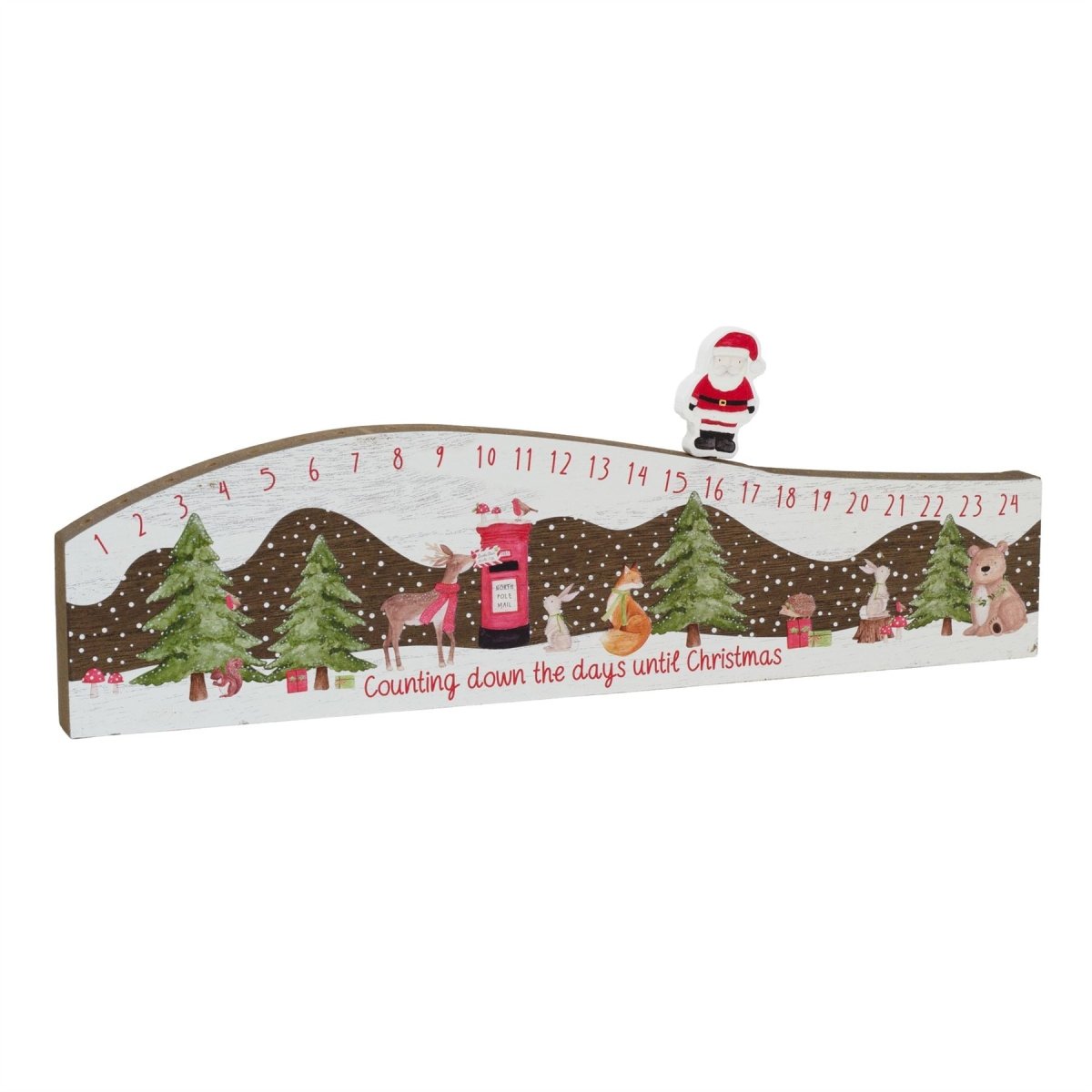 Bring festive magic to your home with this wooden advent calendar. Move the Santa figure daily, enjoy a woodland scene, and create lasting family memories