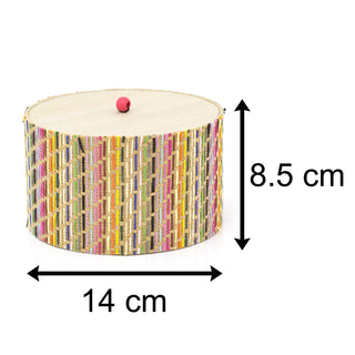 Kasbah Round Wooden Trinket Box | Multicolour Weave Storage Pot | Boho Wooden Jewellery Box Gift Box With Lid