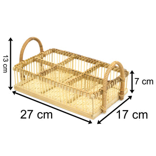 6 Section Bamboo Tray Caddy Storage Cutlery Caddy | Condiment Caddy Napkin Holder | Cutlery Holder Organiser