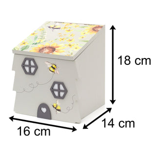 Pretty Beehive Storage Box | Grey Wooden Bee House Caddy | Decorative Bee Hive Storage Box