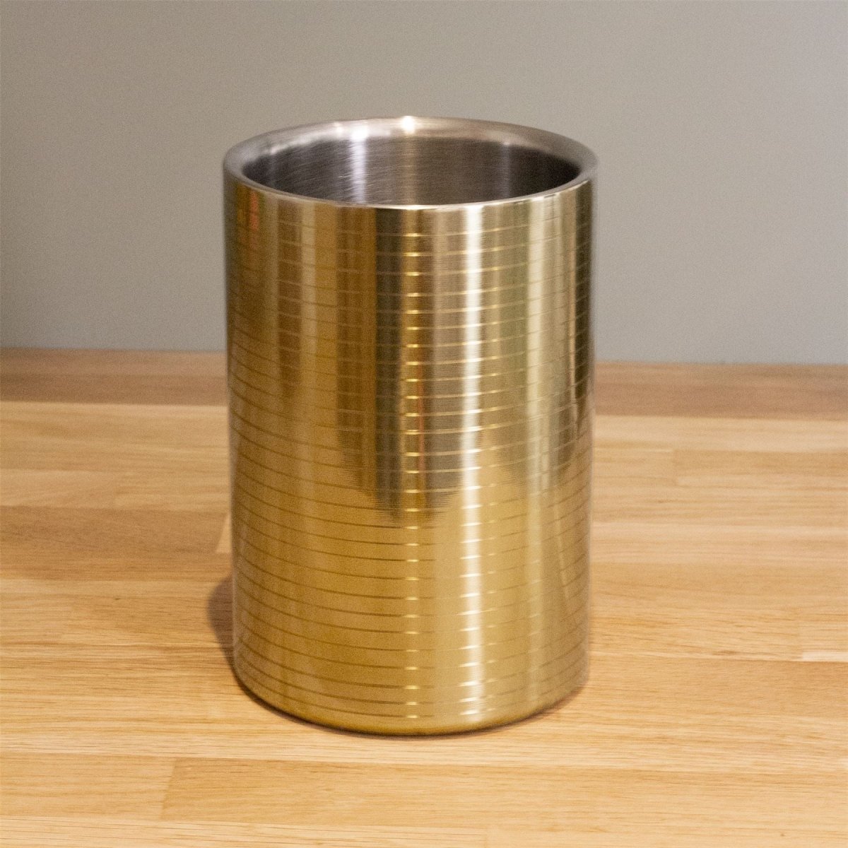 WINE COOLER | Crafted from high-quality stainless steel, this wine cooler boasts a luxurious gold-coloured finish that adds a touch of elegance to any table setting
