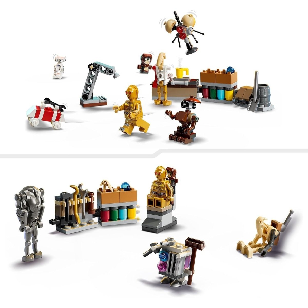 BUILD & PLAY EVERY DAY | Kids can create Babu Frik’s droidsmith workshop with connectible builds including a Jawa vehicle, crane, extra droid parts, and even a Christmas tree