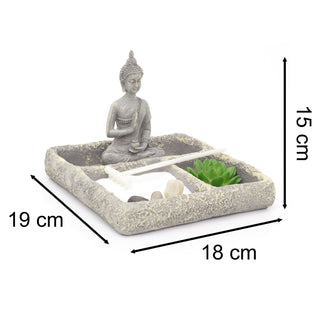 Buddha Statue Zen Garden Set | Polyresin Miniature Desktop Zen Garden Buddha Ornaments | Desktop Stress Relief Meditation Spiritual Decor