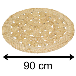 90cm Round Woven Area Rug Braided Cotton Rug | Entrance Rug Circle Boho Plaited Scatter Rug | Woven Braided Area Rugs Bohemian Rug
