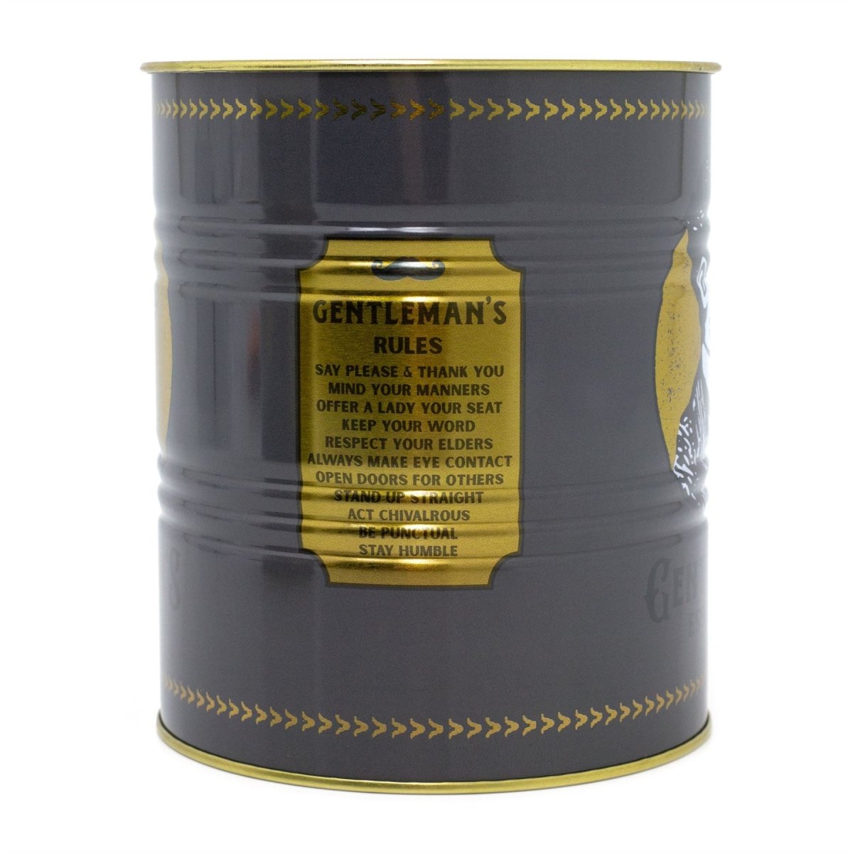 DECORATIVE STORAGE TINS | Our gentleman's essential metal tin can set, a must-have addition to any stylish home. Crafted with meticulous attention to detail, this set includes two varying-sized storage tins, each adorned with eye-catching designs inspired by classic gentleman's essentials