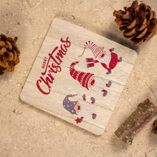 Set Of 6 Christmas Gonk Coasters | 6 Wooden Merry Christmas Coaster And Holder