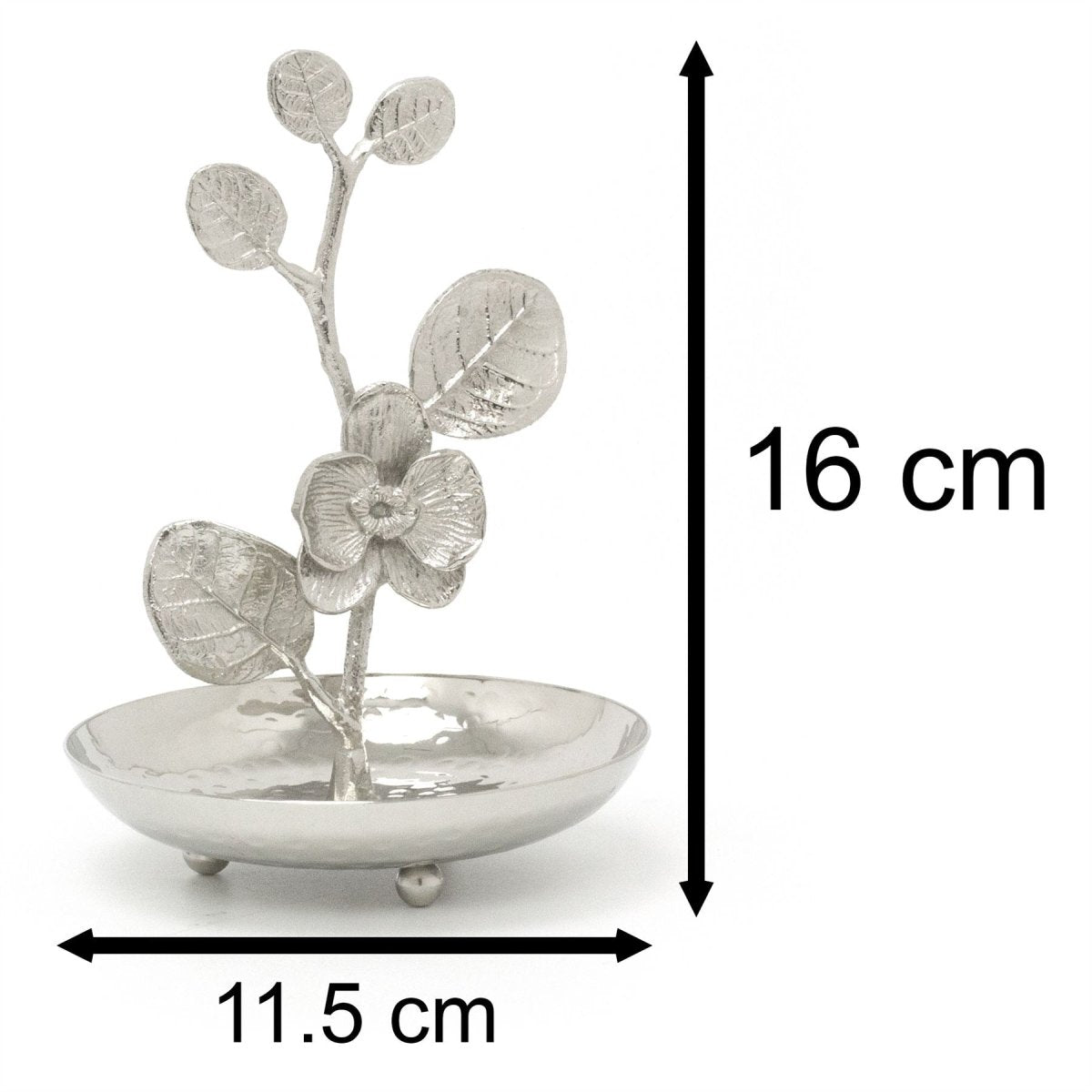 JEWELLERY HOLDER | A gorgeous silver-tone metal jewellery stand, stylishly embellished with raised leaf patterns on both sides, the polished and muted surface catches and throws the light in all directions