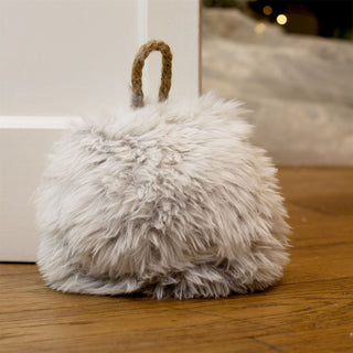 Cream Faux Fur Cube Doorstop | Square Plush Weighted Door Stop With Handle 21cm