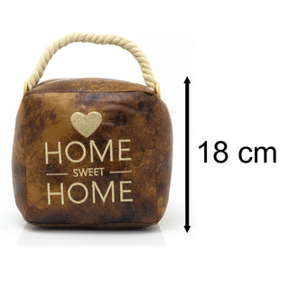 Brown Faux Leather Doorstop Cube | Square Home Door Stop Weighted Door Stopper
