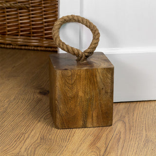 Mango Wood Dice Shaped Doorstop | Novelty Chunky Cube Wooden Door Stopper - 15cm