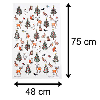 Christmas Tea Towel Winter Wildlife Kitchen Towel | Festive Tea Towels Christmas Tree Tea Towel | Cotton Dish Towel
