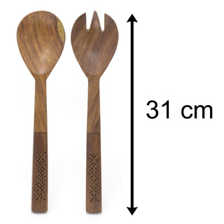 Set Of 2 Wooden Salad Servers Salad Tongs Salad Hands | 2 Piece Salad Fork Salad Spoon | Pasta Salad Serving Utensils