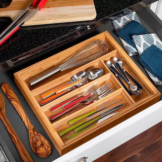 Expandable Wooden Cutlery Tray Organiser | Cutlery Drawer Organiser - 28 to 45cm